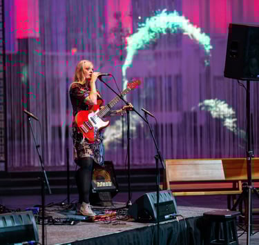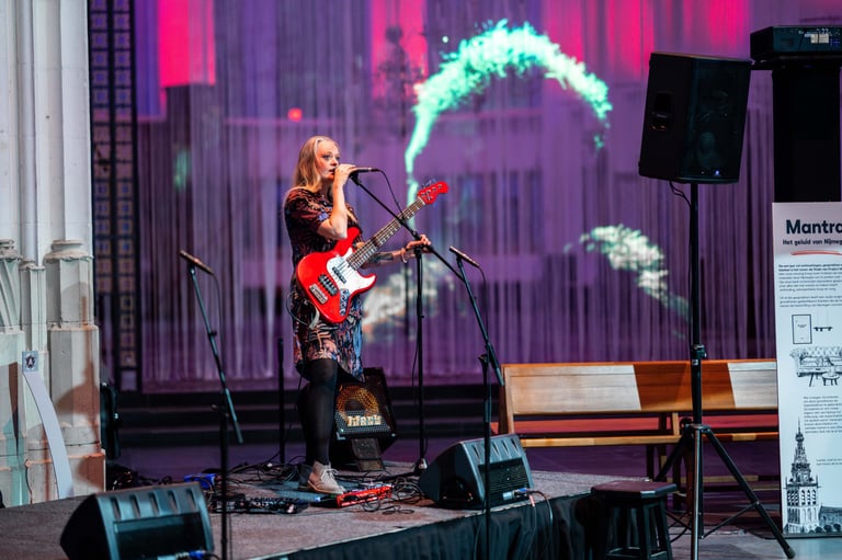 Als professionele muzikante neemt zij haar achtergrond in de popmuziek mee om samen met jullie te zingen, voelen, creëren en verbinden.
